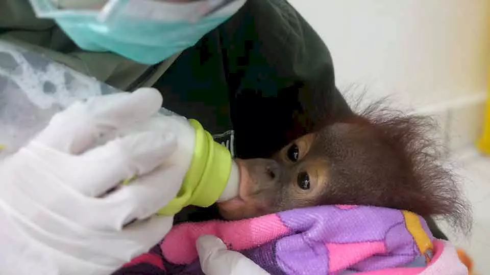 Auch nachts ist immer jemand da, um zu trösten, beim Einschlafen zu helfen oder bei Unwohlsein sofort das tierärztliche Team zu informieren. Genau wie Menschenbabys weinen die kleinen Orang-Utans in der Nacht öfter, werden wach und bekommen in regelmässigen Abständen ihre Milchfläschchen. Gefüttert werden am Anfang Muttermilchersatzprodukte zum Anrühren oder Sojamilch. Das Nuckeln am Fläschchen und die körperliche Nähe zur Babysitterin beruhigt bei gleichzeitiger Versorgung mit überlebenswichtigen Vitaminen. Unsere Ersatzmütter geben alles, um die engste Mutter-Kind-Beziehung in der Tierwelt - die unglaublich starke Bindung zwischen der verlorenen Orang-Utan-Mutter und ihrem Baby - so gut es eben geht zu ersetzen.