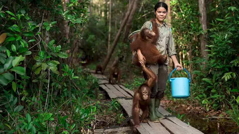 In der BOS-Waldschule lernen verwaiste Orang-Utans alles, was sie für ein Leben in Freiheit brauchen: klettern, Nahrung suchen, Gefahren erkennen und sich in einer Gruppe zurechtfinden. Was ihnen in der Natur von ihren Müttern beigebracht wird, vermitteln hier erfahrene menschliche Ersatzmütter. Auch Jeni, ein aufgewecktes Orang-Utan-Mädchen, macht auf diesem Weg grosse Fortschritte.